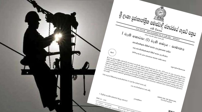 අතිවිශේෂ ගැසට් පත්රයකින් විදුලිබල සේවාව අත්යාවශ්ය කෙරේ