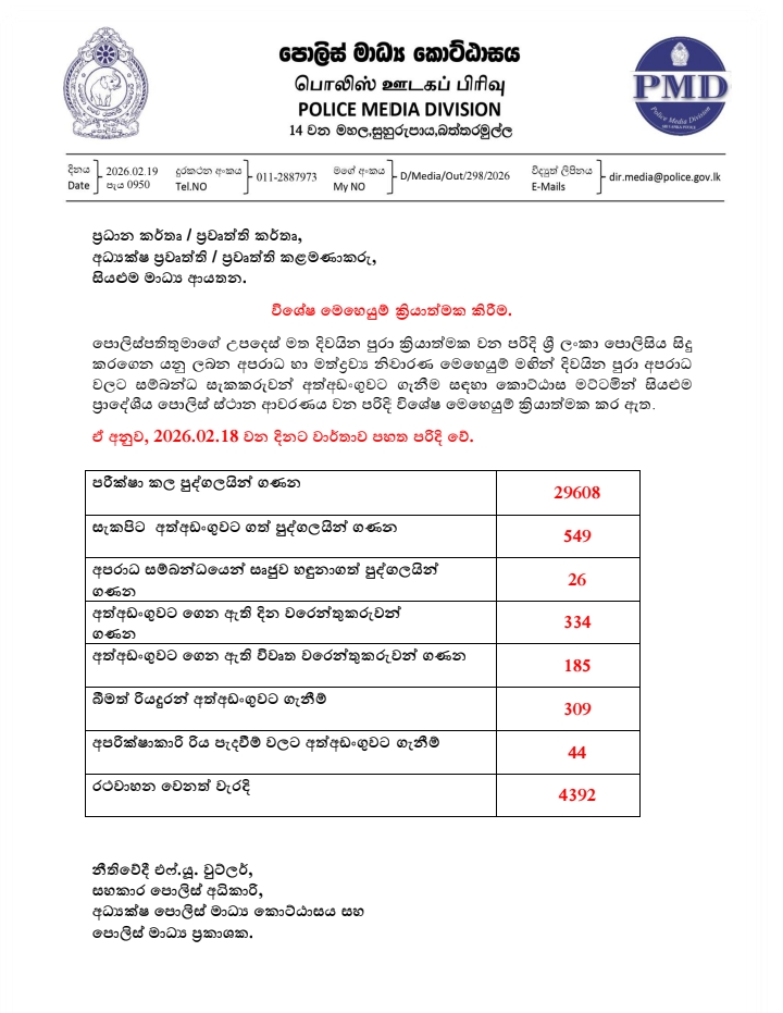 ඊයේ දින සිදුකළ පොලිස් විශේෂ මෙහෙයුම් වල ප්‍රතිඵල මෙන්න